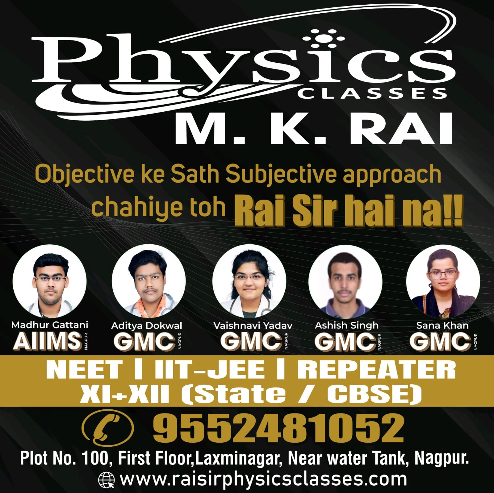 At Rai sir Physics Classes, we focus on making Physics simple, logical, and enjoyable. Our coaching combines clear concept-building to help students excel in JEE, NEET, Repeater and Class 11 + 12. With personalized attention, regular assessments, and a motivating environment, we ensure every student builds a strong foundation and gains the confidence to score high.